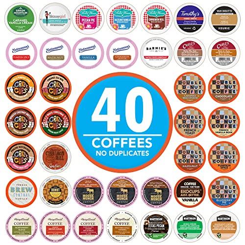- 40 UNIQUE FLAVORS WITH ZERO DUPLICATES! Get 40 individual flavored coffee pods from the top brands in the industry. Including Moose Munch, Pioneer Woman, Crazy Cups, Guy Fieri, Double Donut, and So Much More