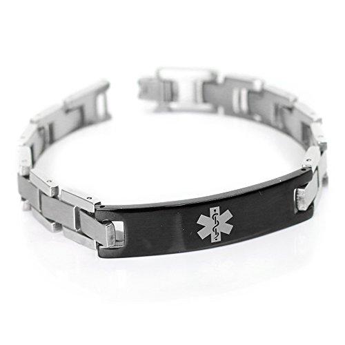 - BLACK & EASY TO READ: Custom engraved medical bracelet with Lifetime Warranty - Black engraving recommended for your safety (see photos) - Warranty provided by My Identity Doctor