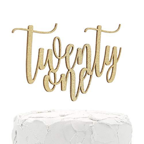 NANASUKO 21st Birthday Cake Topper - twenty one - Double Sided Gold glitter - Premium quality Made in USA