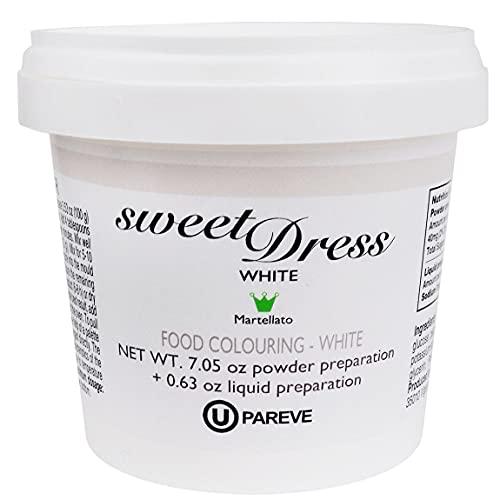 Sweet Dress Confectionery Lace Mix 7 Ounces (200 Grams)Sweet Dress (also called Sugar Dress) is a product that provides a lace effect decoration in several motifs for your cakes. The final result will be sufficiently elastic and resistant to avoid breakage during the demolding or positioning on the cake. Furthermore the decoration maintains a clear white color and it's possible to customize by adding some other colors. Just add water to the two ingredients, mix well and spread it on your silicone lace mats. Let it dry for 6 to 8 hours or put it into the oven at 158 to 176 degrees Fahrenheit for 10 to 12 minutes and you'll have your lace decoration quickly and easily. Contents enclosed in plastic pail.
