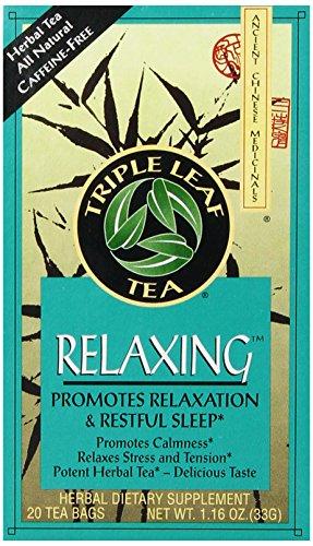 Herbal dietary supplement. Herbal tea. All natural. Caffeine-free. Promotes relaxation & restful sleep. Promotes calmness. Relaxes stress and tension. Potent herbal tea. Delicious taste. Triple Leaf Relaxing Tea is a highly potent blend of nervine herbs that helps promote healthy relaxation and restful sleep. This delicious caffeine-free herbal tea includes valerian, passionflower, skullcap, chamomile and catnip, powerful herbs with a long history of use to help promote calmness and help relax feelings of anxiety, stress and tension. These soothing herbs help support the body's natural ability to unwind, relax and rejuvenate. A cup of this tea before bedtime helps promote a quick, peaceful and restful sleep, and waking up feeling relaxed, refreshed and alert. A relaxed state and a good night's sleep help to brighten the mood and gain a new perspective on our daily lives. Besides contributing to a sense of well-being, relaxation and peaceful sleep help maintain a healthy body and mind. This special blend of herbs makes an effective and delicious tea that you can enjoy everyday. While these herbs are grown in the West, they are popular with people everywhere. Traditional Chinese medicine began in approximately 2500 B.C. Recently, here in the West, people have discovered the value of this ancient system which focuses on aiding the body's own healing mechanisms through restoring harmony and balance. The Chinese system of herbology has been recorded in ancient texts which are studied and employed even today. This time tested knowledge has been passed on from generation to generation over the centuries. Triple Leaf Tea comes from such a tradition. It is made in the U.S.A. by a Chinese American family-owned business. The company owner can remember stories of his own grandfather selling herbs and teas in his village in China. Today, these traditional Chinese herbal formulas are available to you. We wish you harmony and balance! We use oxygen bleached tea bags. These statements have not been evaluated by the Food and Drug Administration. This product is not intended to diagnose, treat, cure or prevent any disease.) Made in U.S.A.